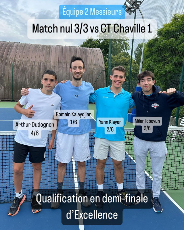 🔷 Équipe 2 Messieurs : Opposée à une solide formation de Chaville, l’équipe a arraché un nul précieux. Elle conserve ainsi la première place de la poule et accède aux demi-finales. Encore deux matchs à gagner pour rejoindre la Prénationale !