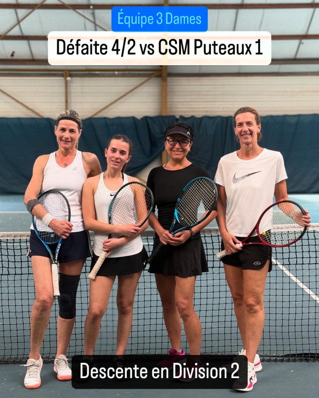🔶 Équipe 3 Dames : Malgré une belle résistance, l’équipe s’incline et descend en Division 2. Mais l’esprit de combativité est là — tomber pour mieux rebondir !